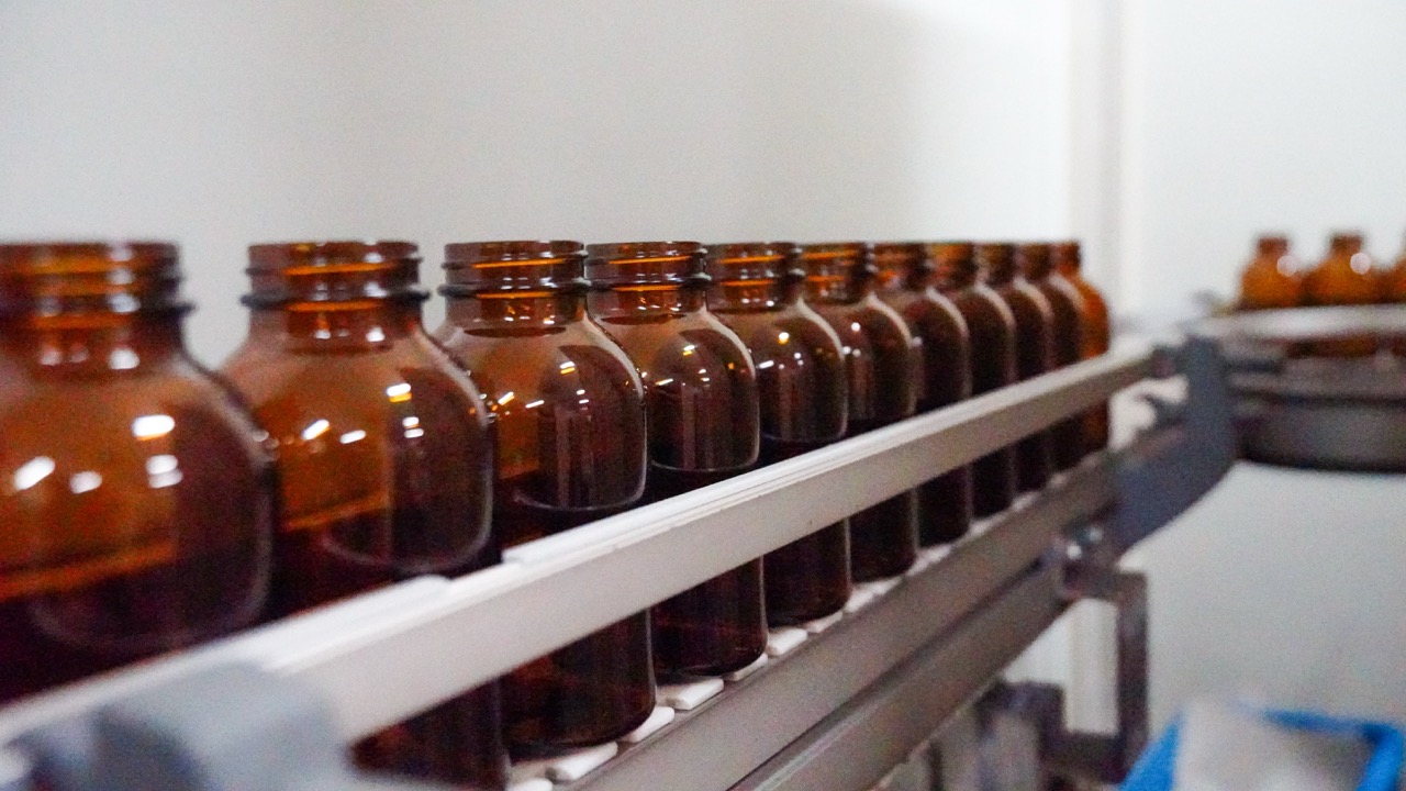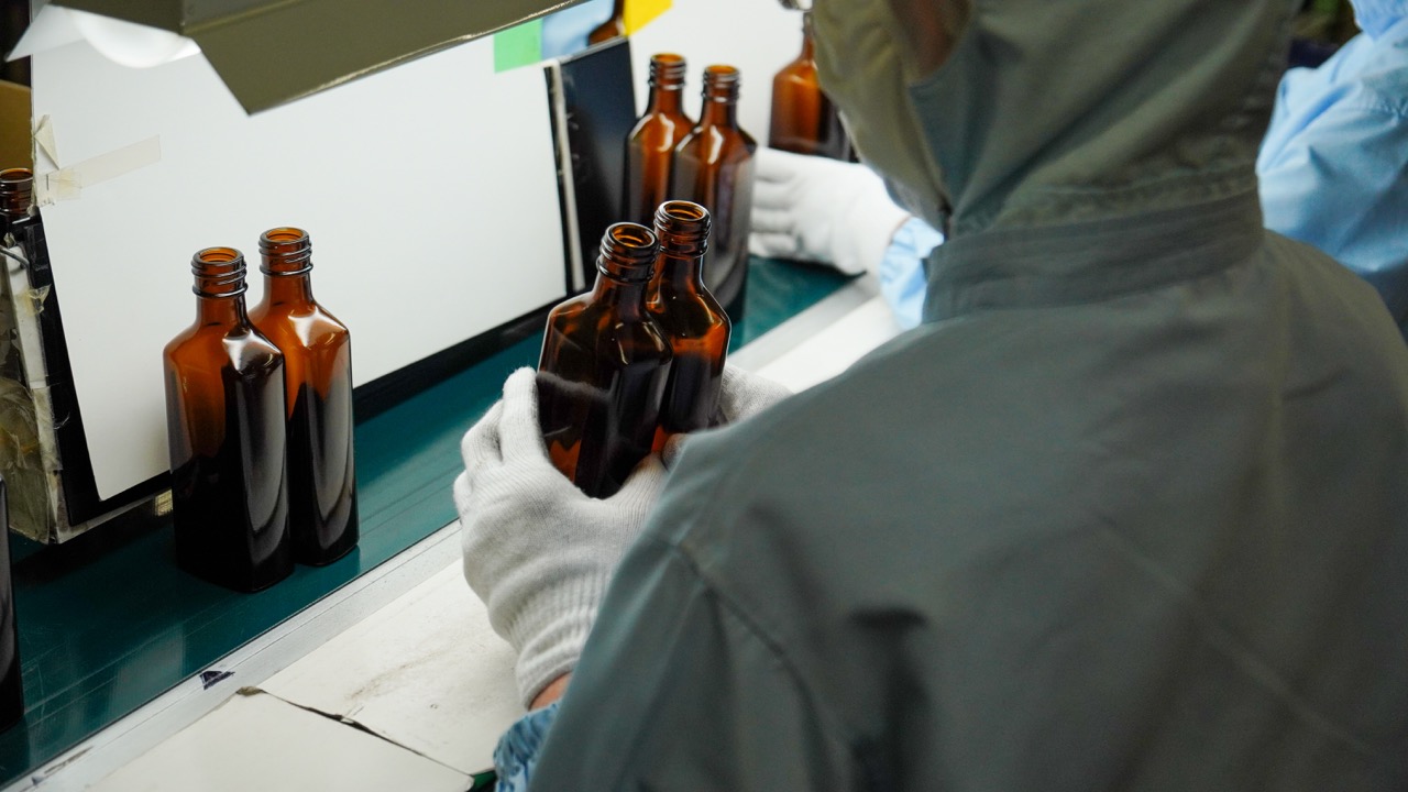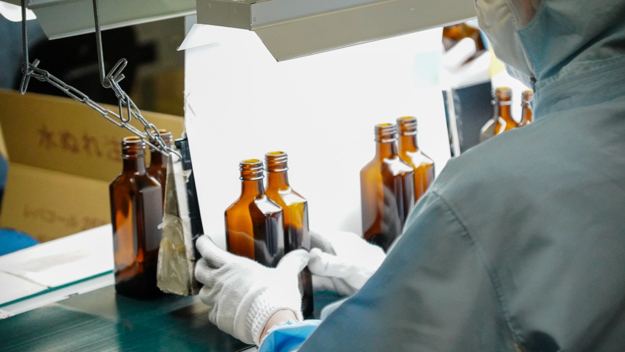 お任せするのは食品びんや化粧品びん、薬品びんといった、普段から目にするガラスびんの検査です。